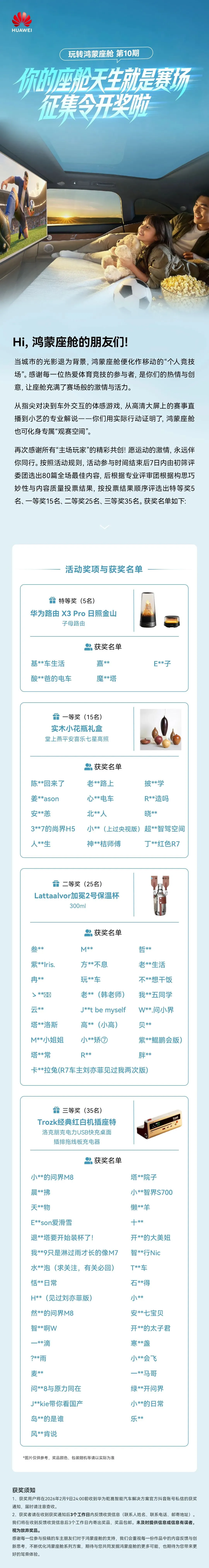 >速来领奖!玩转鸿蒙座舱第10期获奖名单来啦