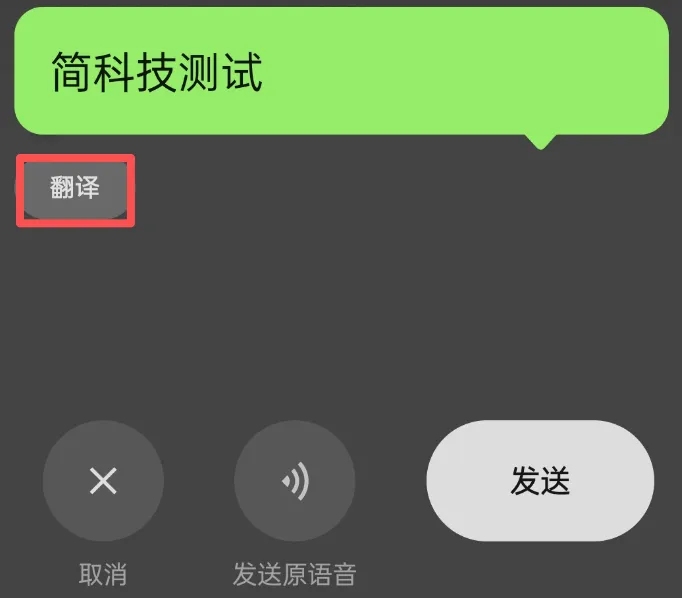 翻译功能回归,之前这个功能被取消过,但现在又回归了,就是我们按住说话并选择「滑到这里转文字」后,现在文字气泡左下角多了一个翻译,点击后我们可切换语言,或朗读当前信息内容。