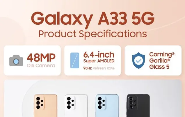 首先来看Galaxy A33,搭载5nm Exynos 1280芯片,性能方面与 Galaxy A53 完全相同。