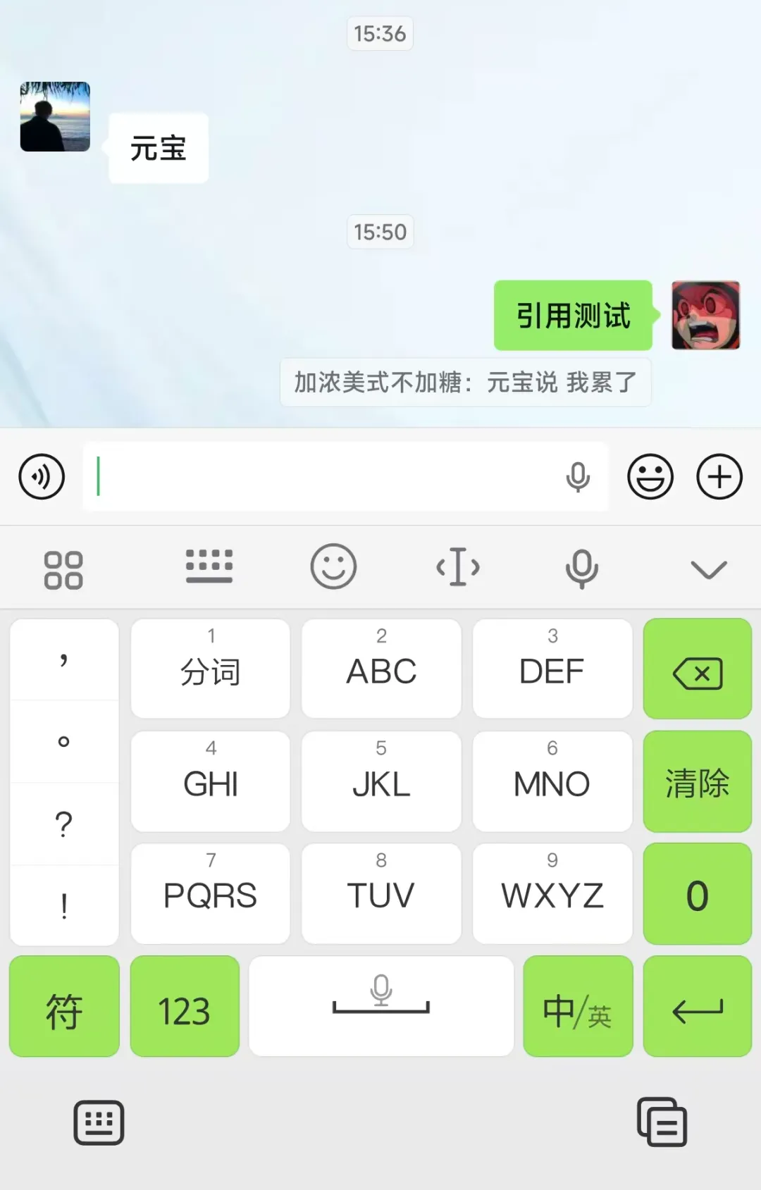 在本次的正式版本中,部分小伙伴应该也注意到了在有聊天背景图片的页面下,引用及时间的背景颜色变成淡了一点了。