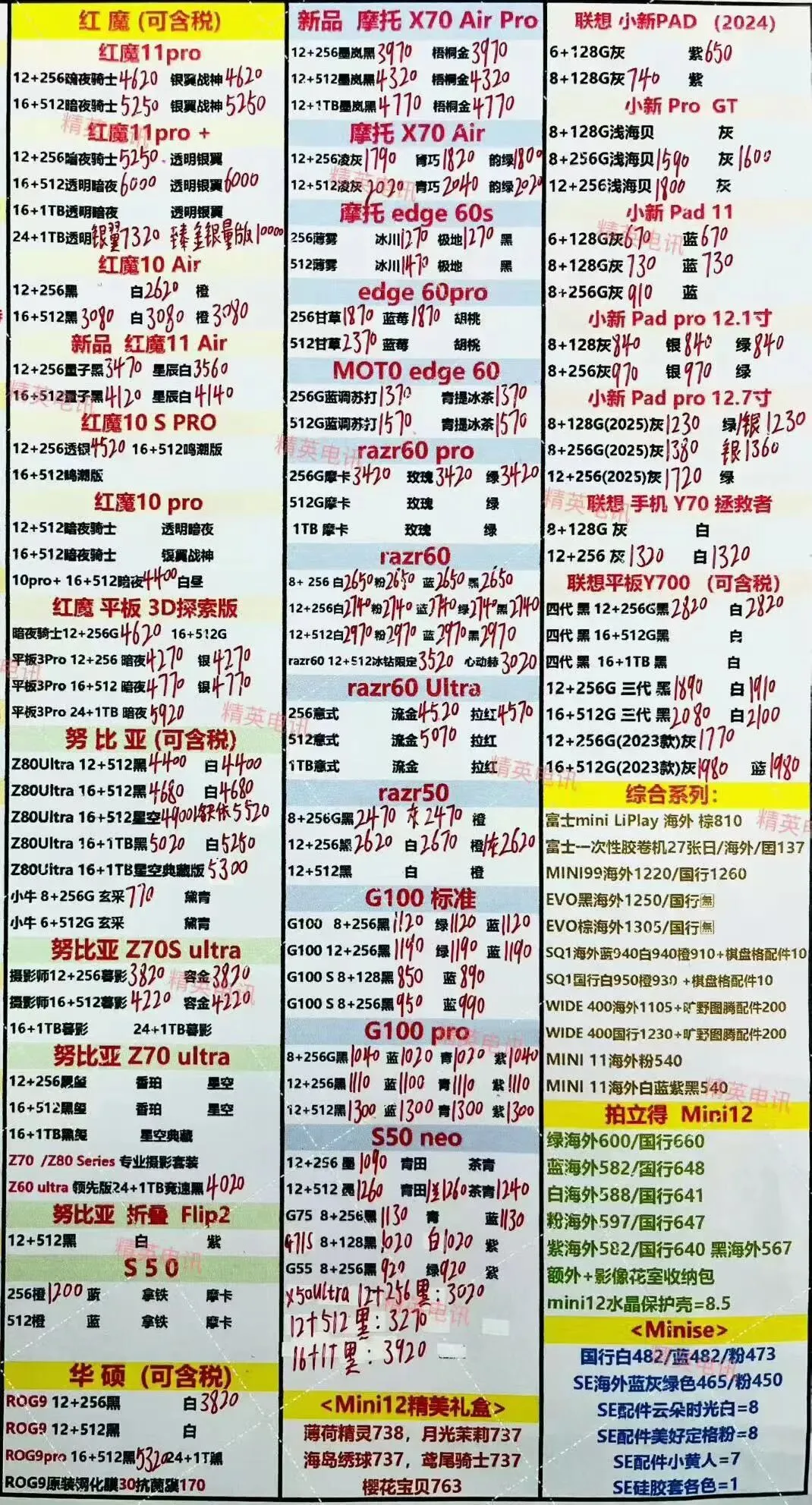 以下报价都是深圳华强北手机批发市场当天的最新批发价格(不含税),报价是我们的批发底价,零售拿货价格需加20~100元不等,京东包邮(量大价格可谈)