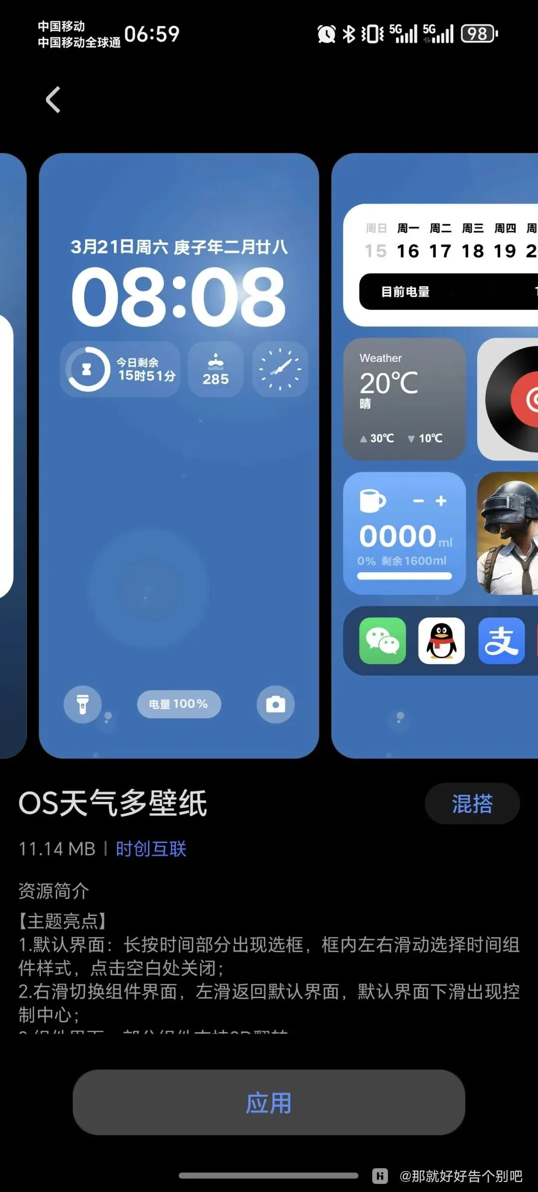 天气壁纸系统在本次更新中获得独立入口,锁屏长按加号按钮即可设置专属动态壁纸。新增的三款预设样式根据实时气象数据自动调整视觉效果,雨天显示雨滴滑落动画,晴天呈现阳光光斑效果。壁纸专区拆分原有"天气与天文"分类为两个独立模块,提供差异化的小组件布局和字体配色方案。