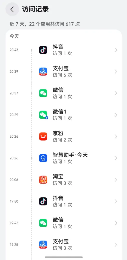 你会看到有些应用短短几天内被唤醒了上百次——这就是手机变卡的隐形成因。很多 App 一打开,就会悄悄连带唤醒好几个“兄弟应用”,它们在后台占着内存、耗着电,手机不卡才怪。