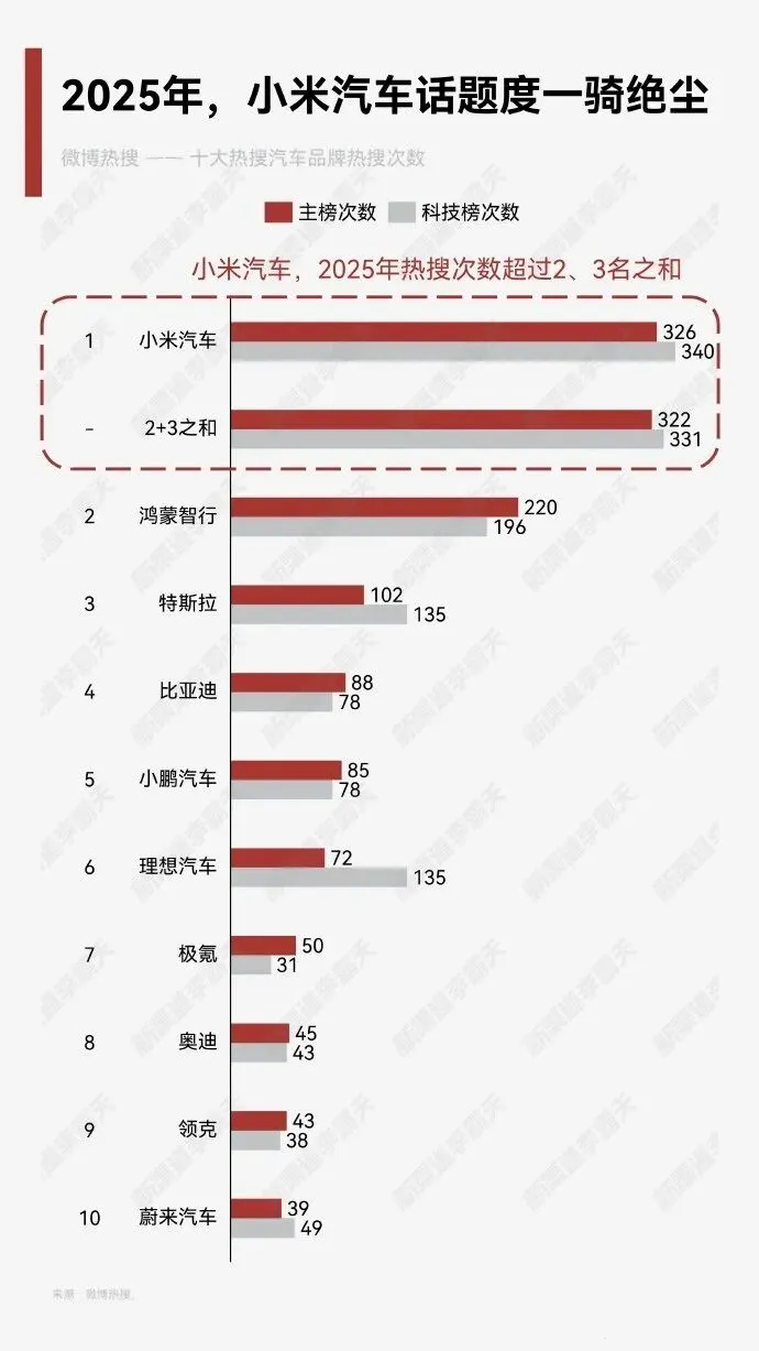 其实不用这个热榜,就凭感觉也基本符合大家认知,纯说2025年车企的纯自然热度,小米绝对第一。