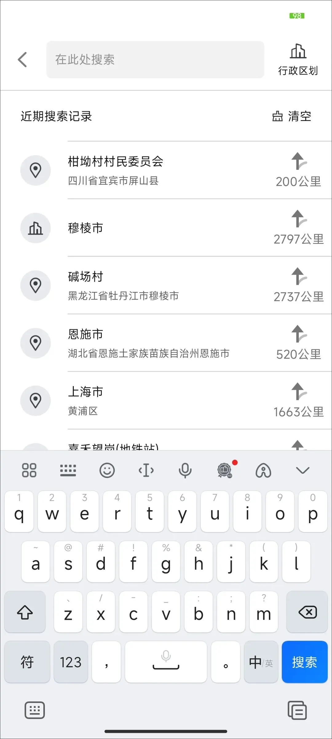 本次升级新增了行政区划定位功能,但需先单击“放大镜”查询图标打开查询界面。
