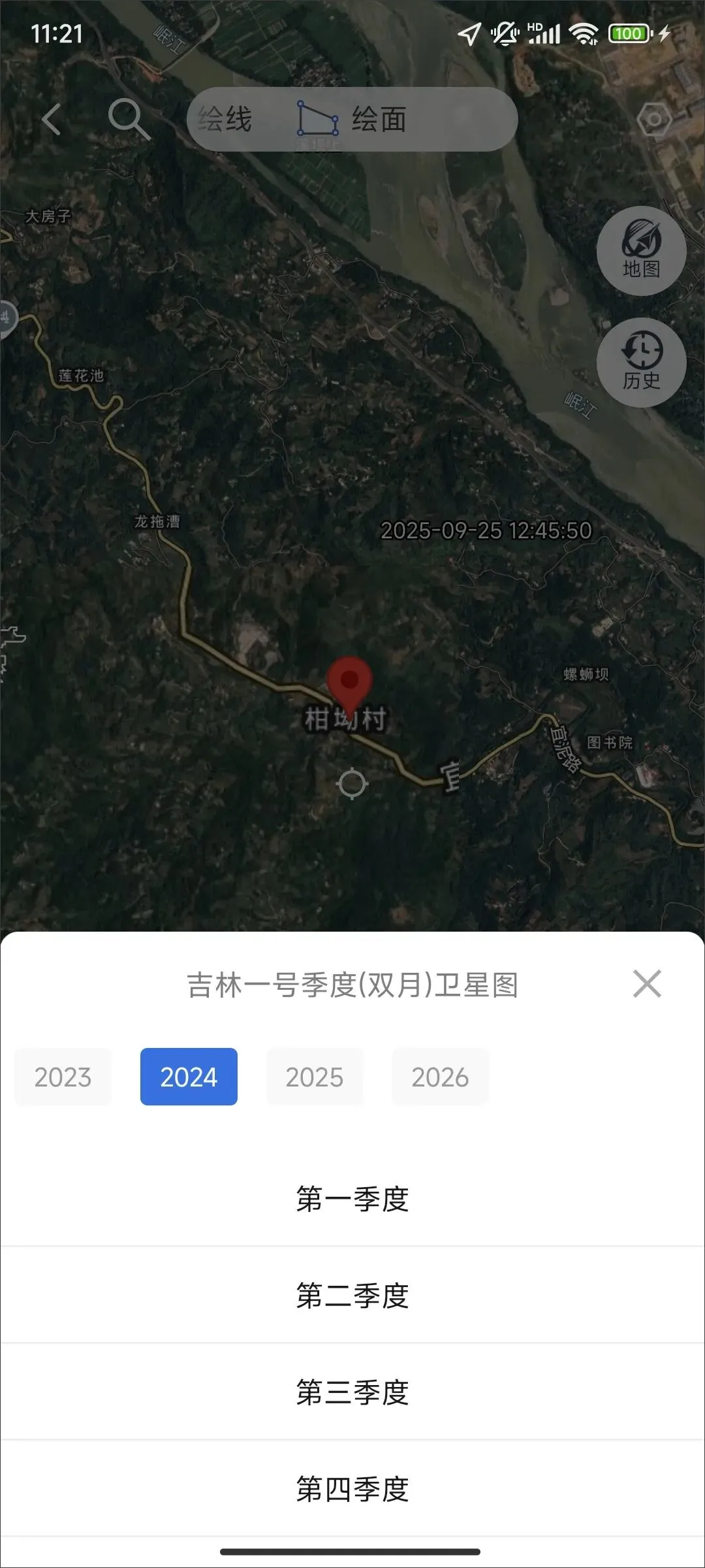 你如果需要历史影像,那么可以单击“历史”查看该区域所能提供的历史影像有哪些。