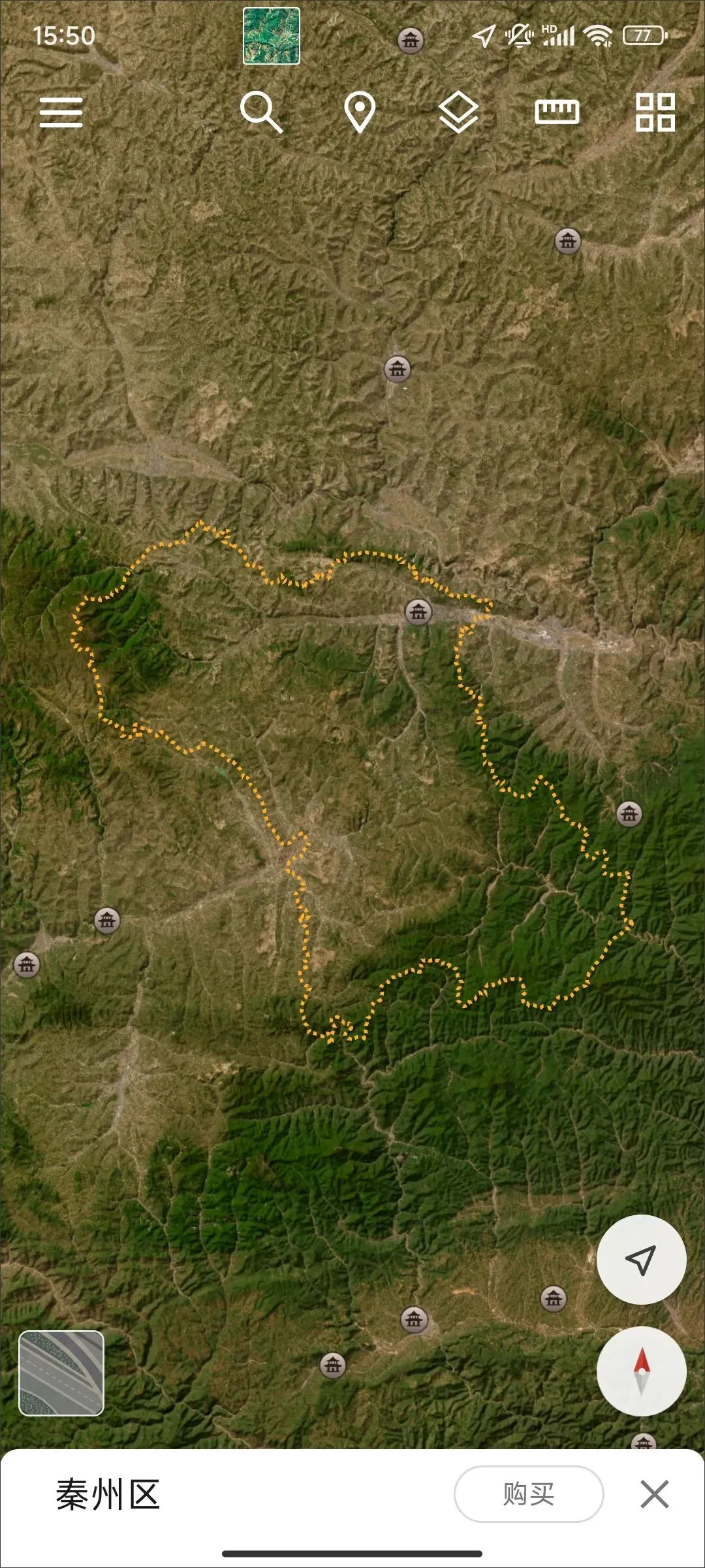 选中行政区划并确定后,会定位到区划范围所在位置,如甘肃省天水市秦州区等。