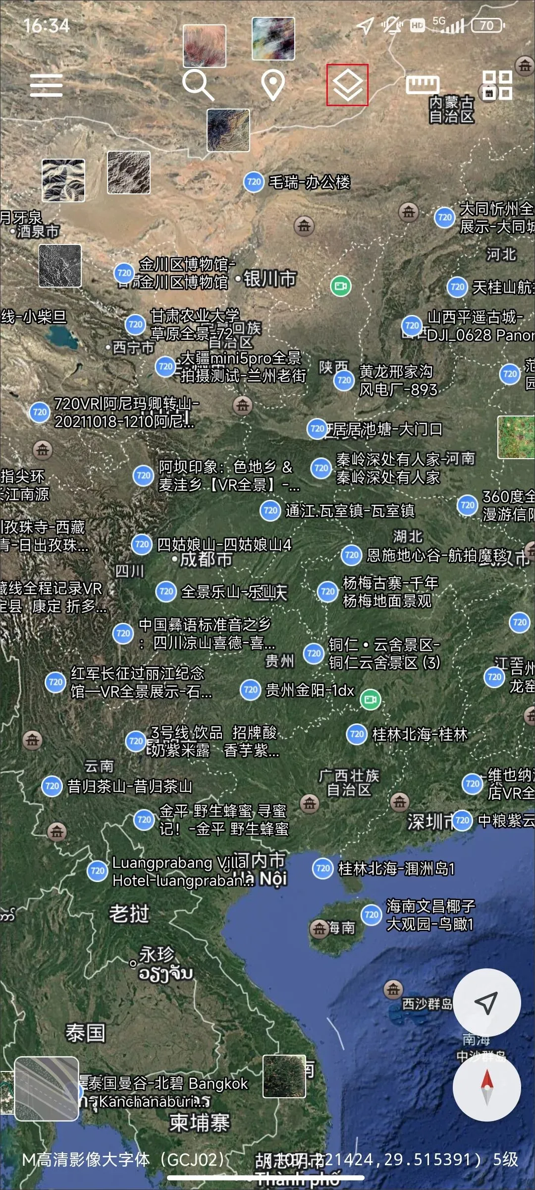 本次升级更新,新增了“名胜古迹”图层,你可以单击“图层”按钮查看系统图层。