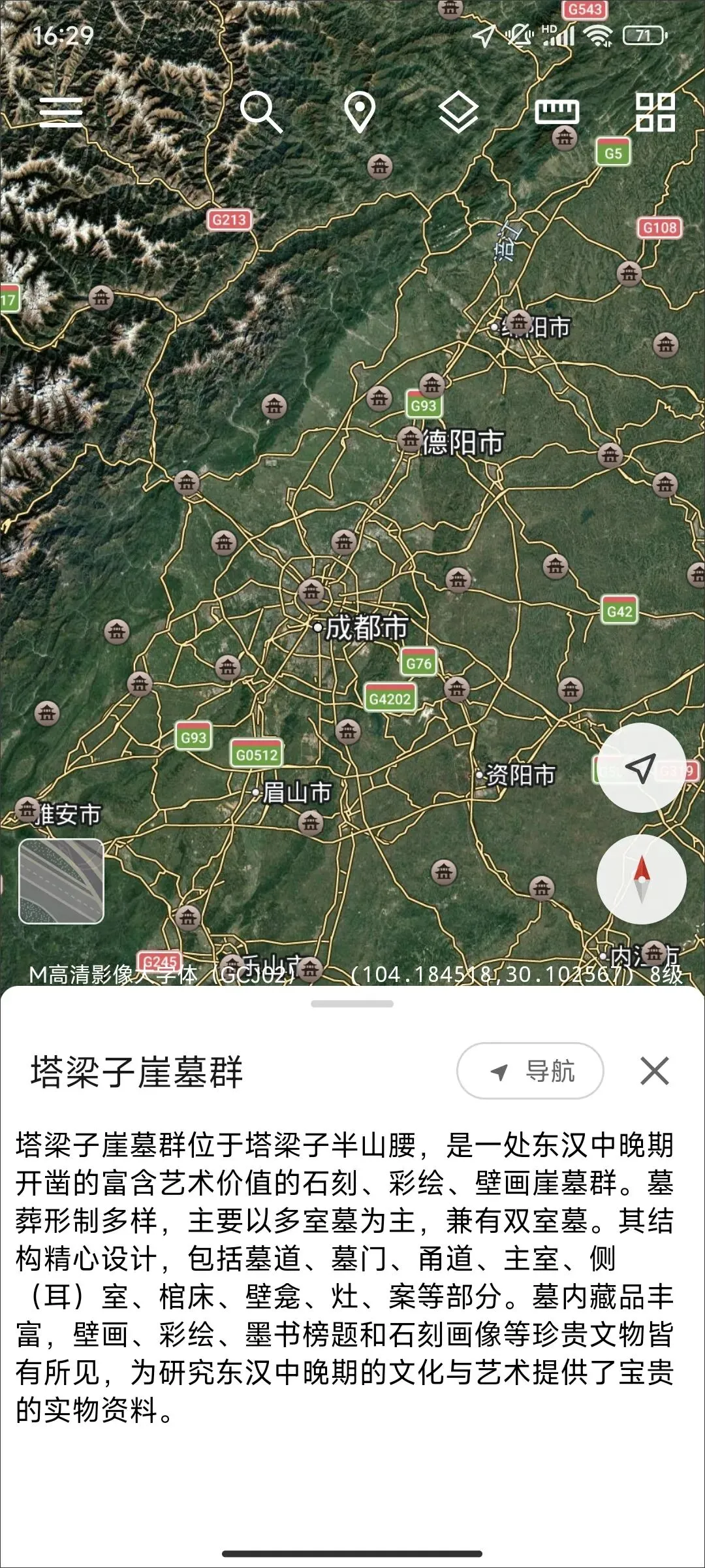 单击“导航”图层,可以为你从当前位置导航到名胜古迹所在位置。