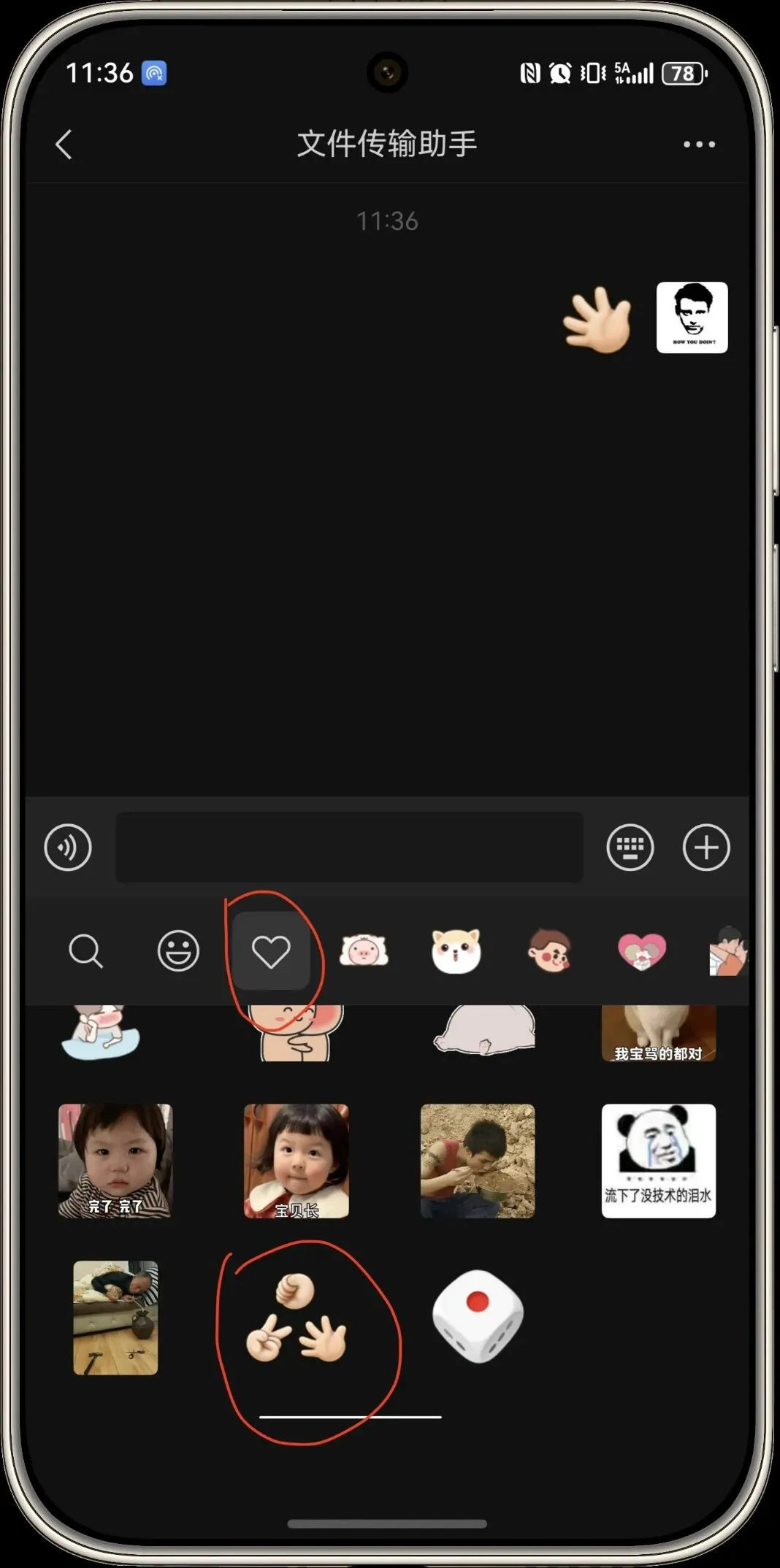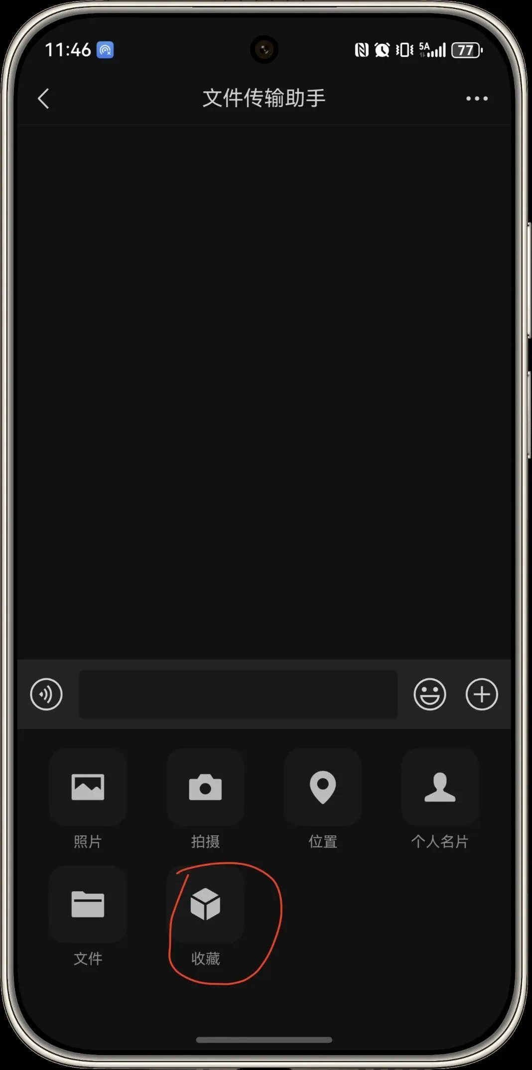 2.收藏内容可直接转发给微信好友。在聊天界面点击“+”号并划至第二页,点击“收藏”按钮打开收藏页面,即可快速挑选已收藏的内容,选择内容转发给微信好友。