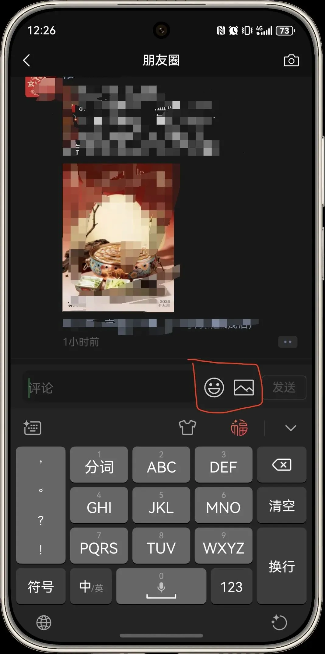 6.朋友圈支持图片及表情包评论。