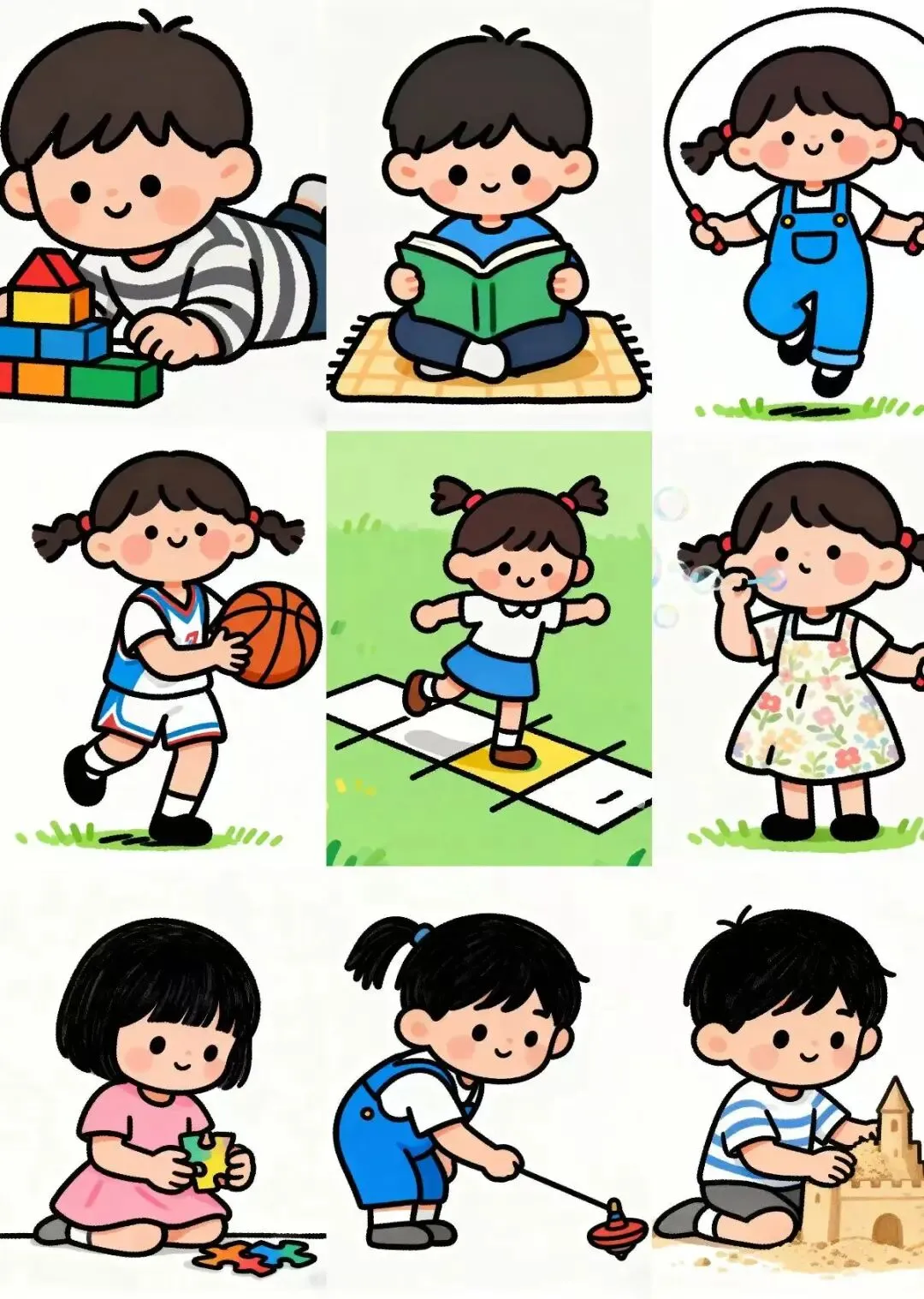 1.每天保证1—2小时的户外活动时间,天气晴朗时,可以带孩子去公园、广场等开阔场地进行运动,增强孩子的体质和协调能力。