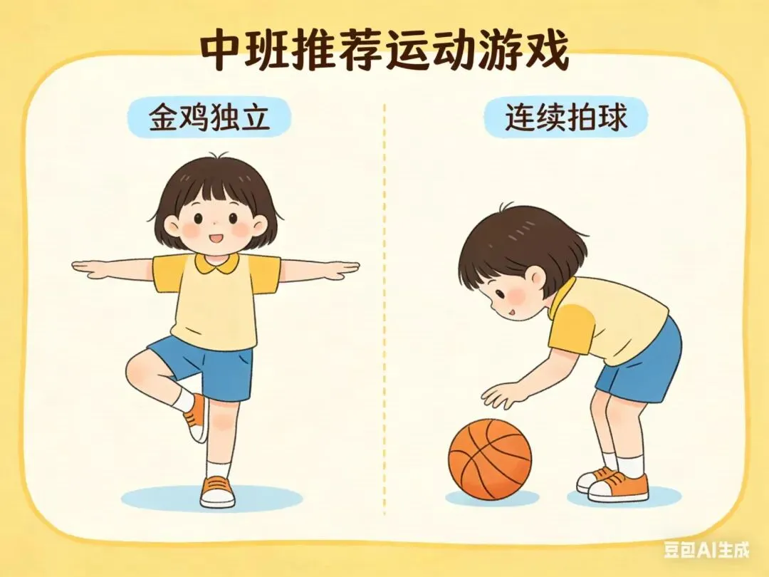 中班的孩子动作协调能力、平衡力、手指的灵活度和精细度都有所提高。如果成人懂得放手,让孩子尝试和感受的话,你会发现多了一个小帮手,并且为此自豪。