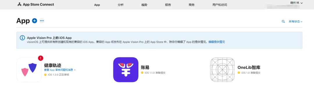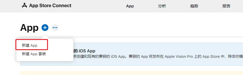我们添加新的 App 以及上架 App Store 的入口就在这里: