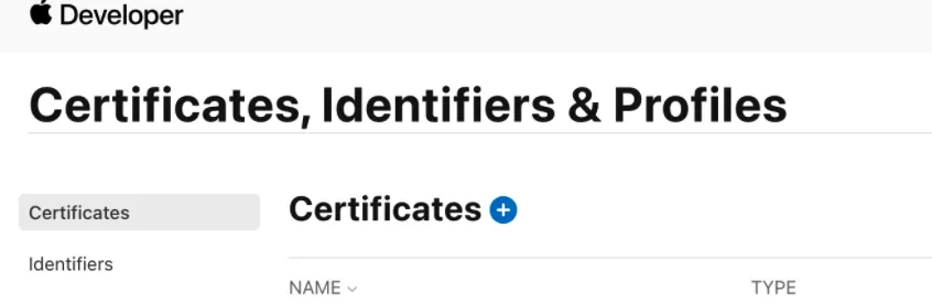 选择 Certificates 后,点击加号以创建新的证书: