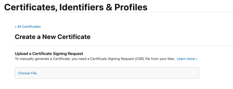 点击选择刚刚在Mac生成的CSR文件: