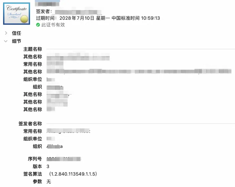 如果你要备案这个App,则需要填写App特征信息。你只需要在钥匙串访问的证书列表中,双击使用的证书,就可以找到: