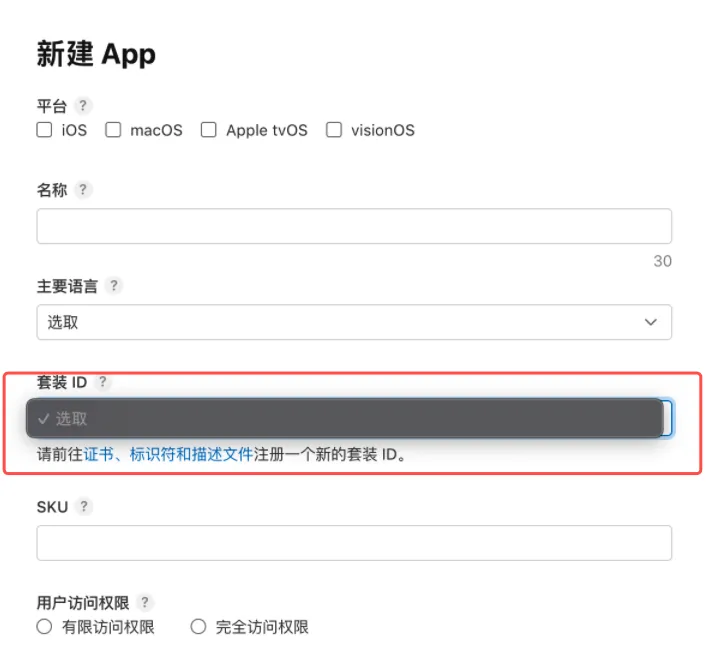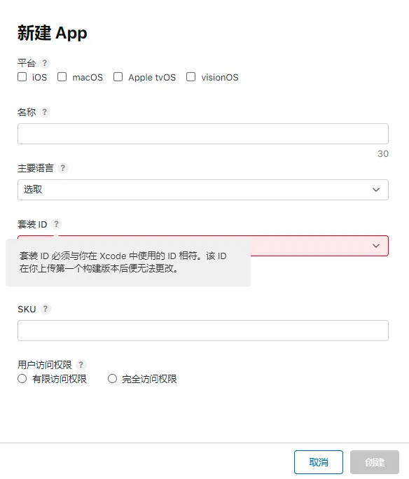 在 App Store Connect 创建App