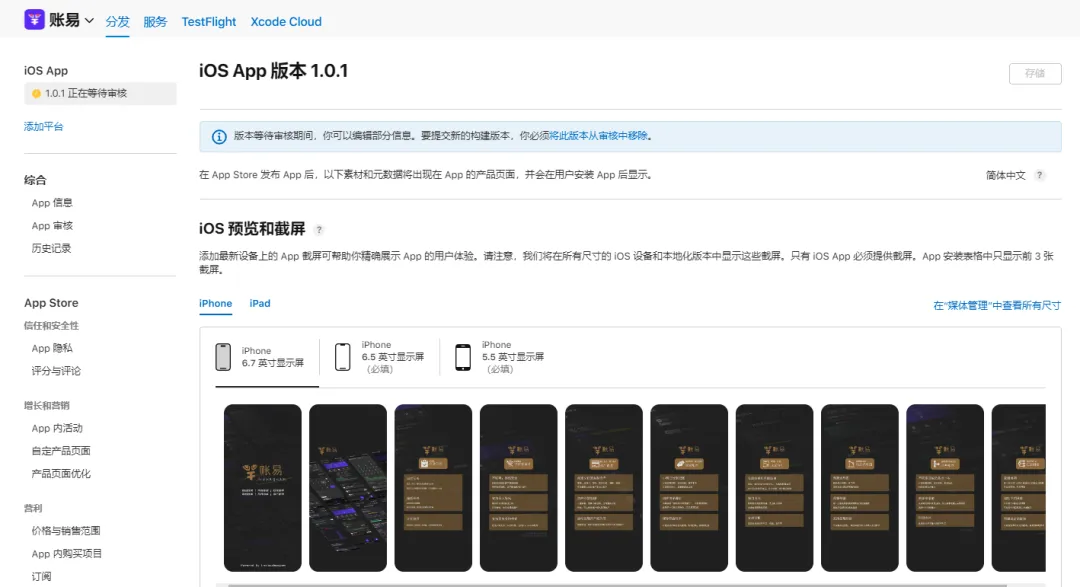 这里的每一个设备截屏都需要添加,不能缺任何一个(缺的话无法提交审核)