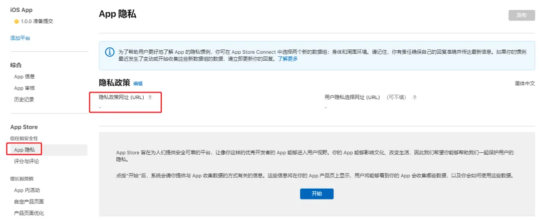 需要你声明隐私政策,并提供隐私政策网址: