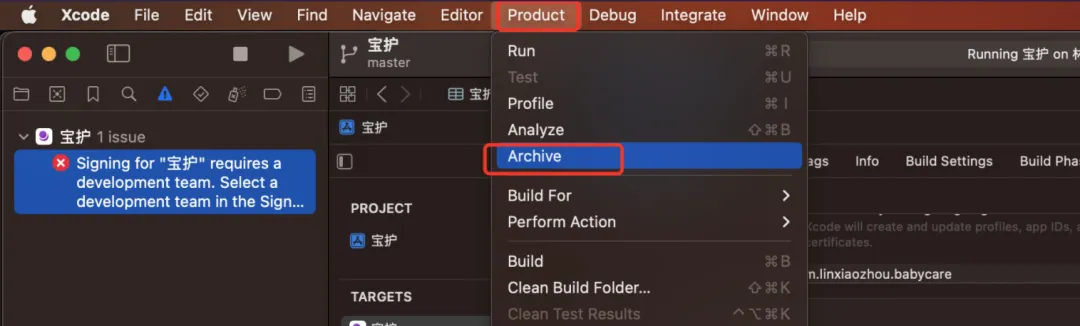 在 XCode 中,选择“Product” -> “Archive”: