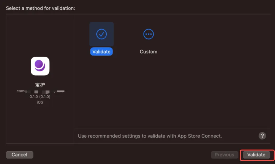 验证 Archive:点击右侧的“Validate App”,在新的对话框中选择“Validate”后: