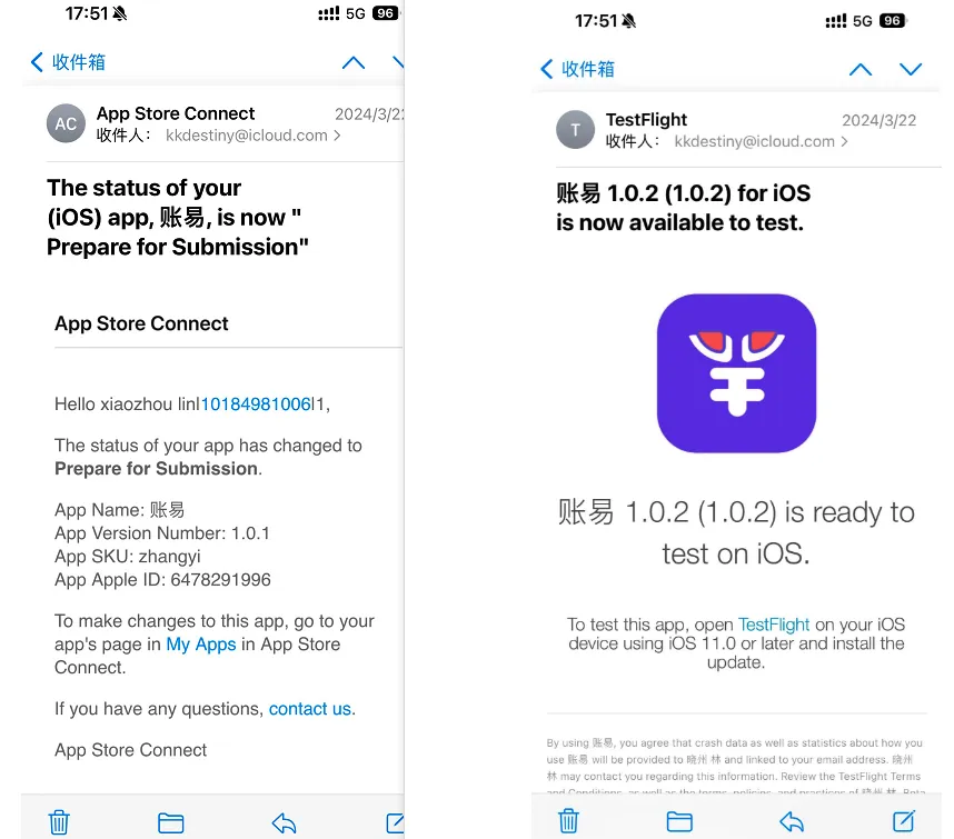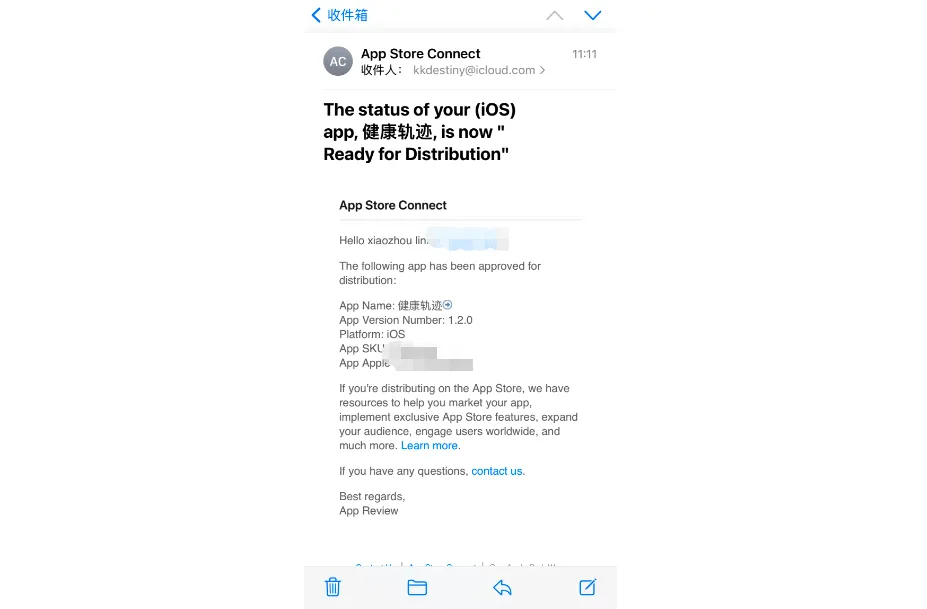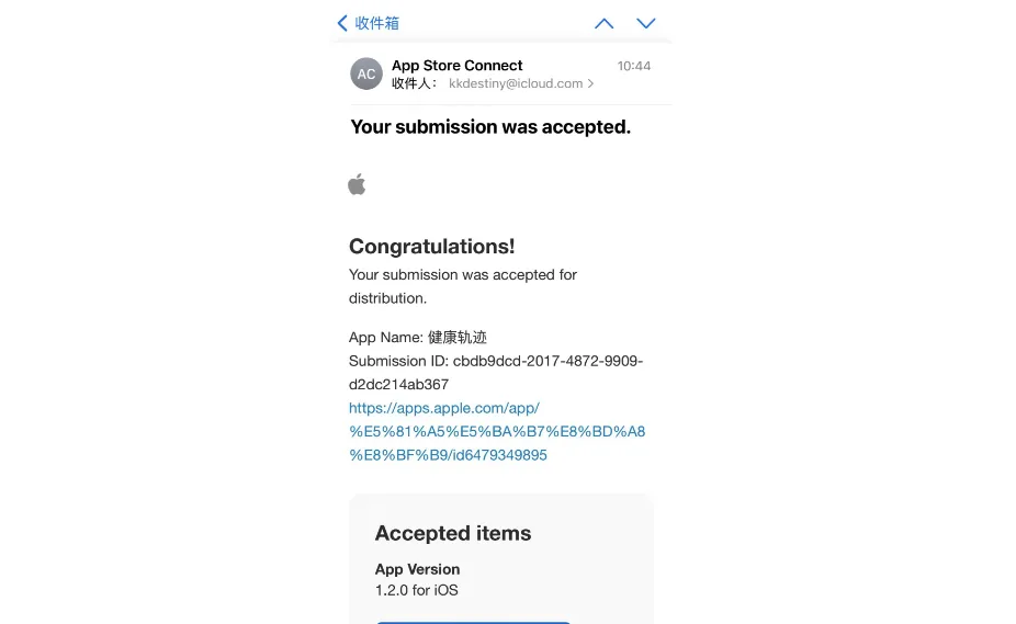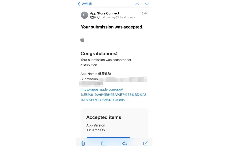 如果你选择了自动发布版本,则 Apple 会自动分发到 App Store。如果你选择的是手动发布版本,则在收到审核通过的邮件后,需要你回到 App Store Connect 页面进行操作。
