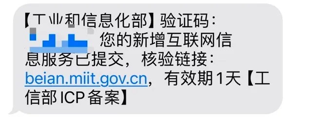 阿里云提交到工信部后不久,工信部就会下发一个核验短信后,务必尽快(1天内)打开短信里提供的网站输入核验码以完成核验