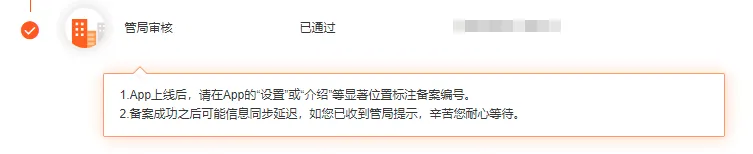 管局通过审核后,即可获得该 App 的备案号。