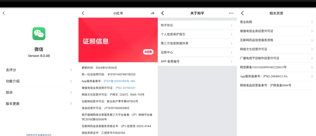 你需要在自己的 App 中放置,如“关于”页面。你可以参考一些常见 App 的备案号展示方式: