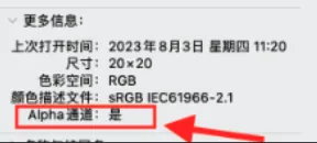 右键图标文件,打开“显示简介”,可以看到Alpha通道的状态是“是”: