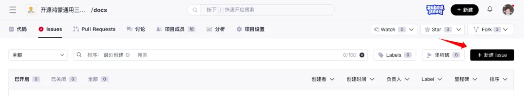 Issues页签,点击“新建Issue”按钮。
