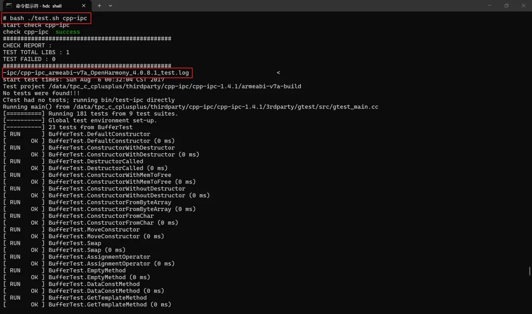 cpp-ipc三方库的交叉编译和编译产物推送ohos设备测试工作。接下来,使用HPKCHECK方式完成测试。