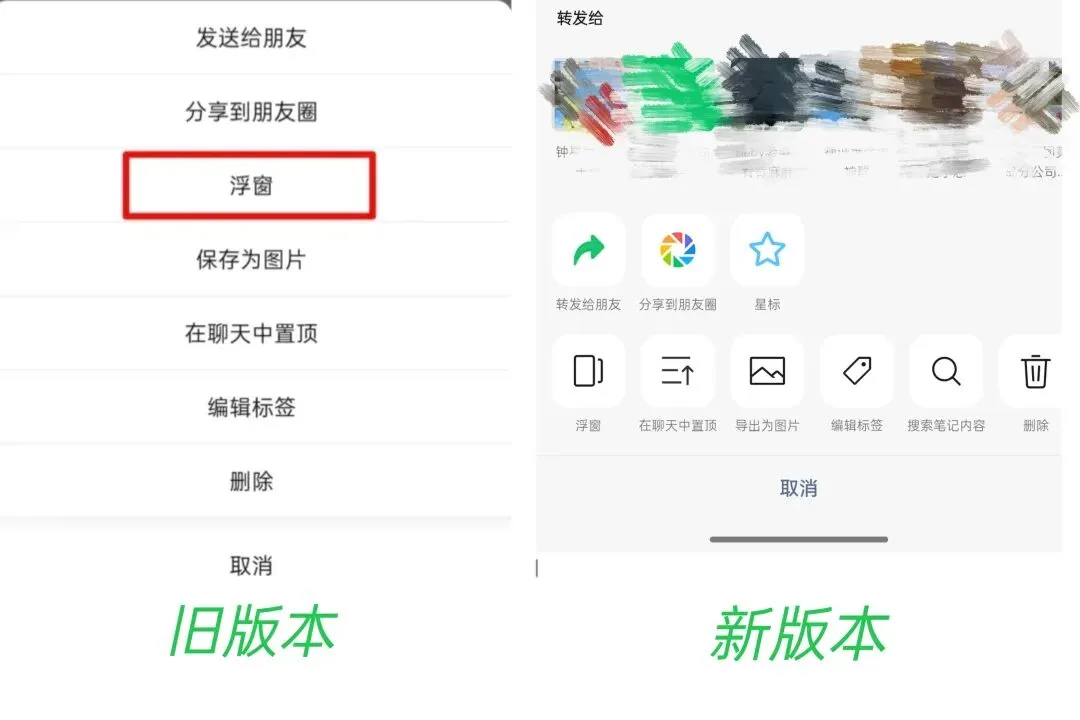 重点是,公众号文章设置的「浮窗」和微信笔记设置的「浮窗」,跳转的路径是不同的。所以,这个设置多少有点纠结了。但是,有了总比没有强。笔记的这一大变更,非常值得点赞👍二、笔记增加撤回按钮