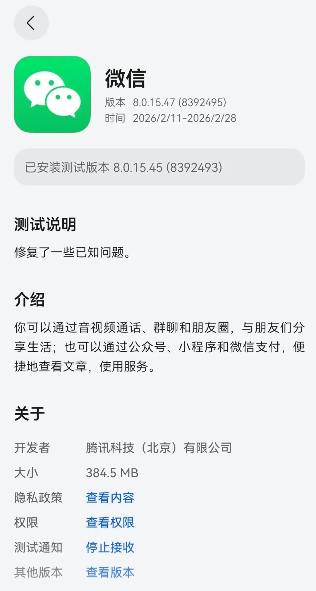 随着鸿蒙操作系统生态不断完善,越来越多用户开始在华为及其他搭载鸿蒙系统的设备上使用独立开发的 微信鸿蒙版。近期微信鸿蒙版进入了新一轮版本迭代,8.0.15 系列正在逐步扩大内测/尝鲜推送范围,带来了许多实用体验升级。