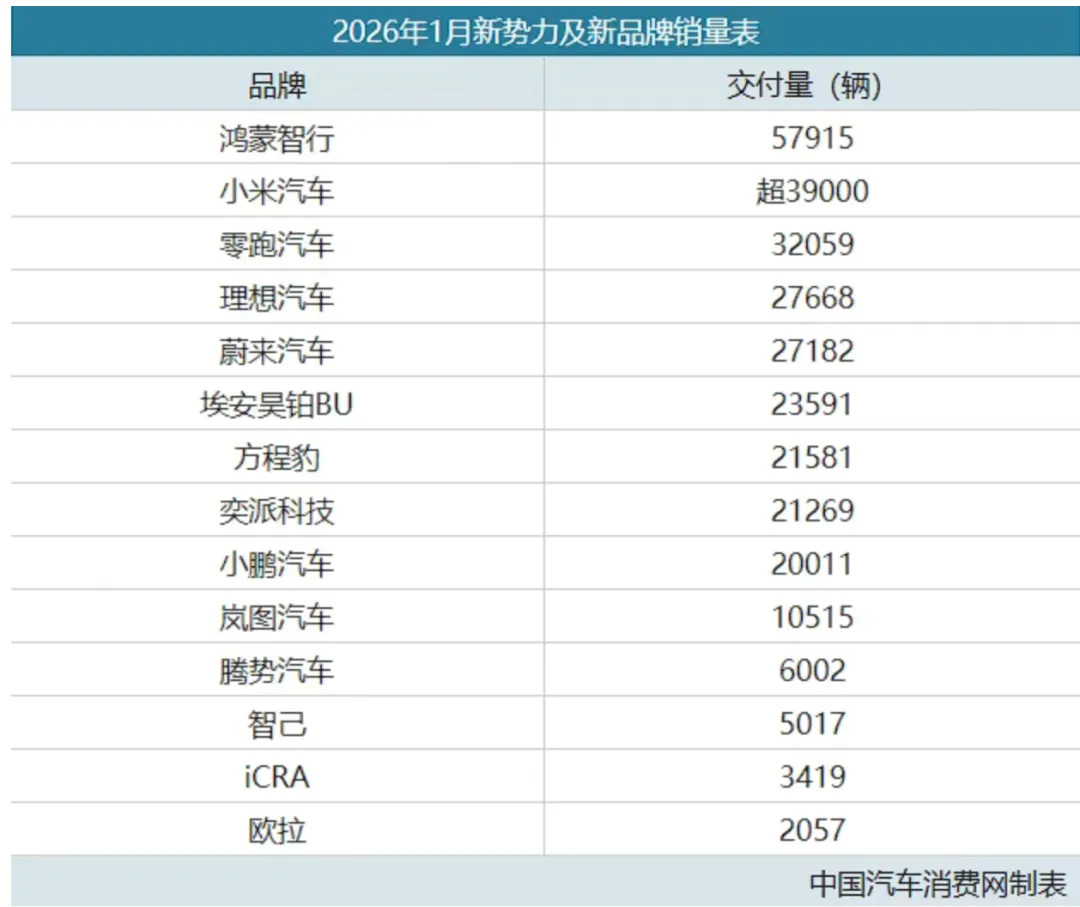 新年 1 月份的新势力品牌数据出来,鸿蒙登顶,小米跟随其后。根据多家媒体报道,小米汽车在2026年将有密集的新车发布计划,旨在覆盖更广泛的市场区间。