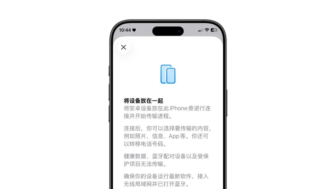 用户只需将 iPhone 靠近 Android 设备,即可通过无线方式传输以下内容: