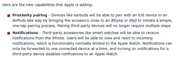 第三方耳机或其他配件,靠近iPhone就能自动配对,体验向AirPods看齐。