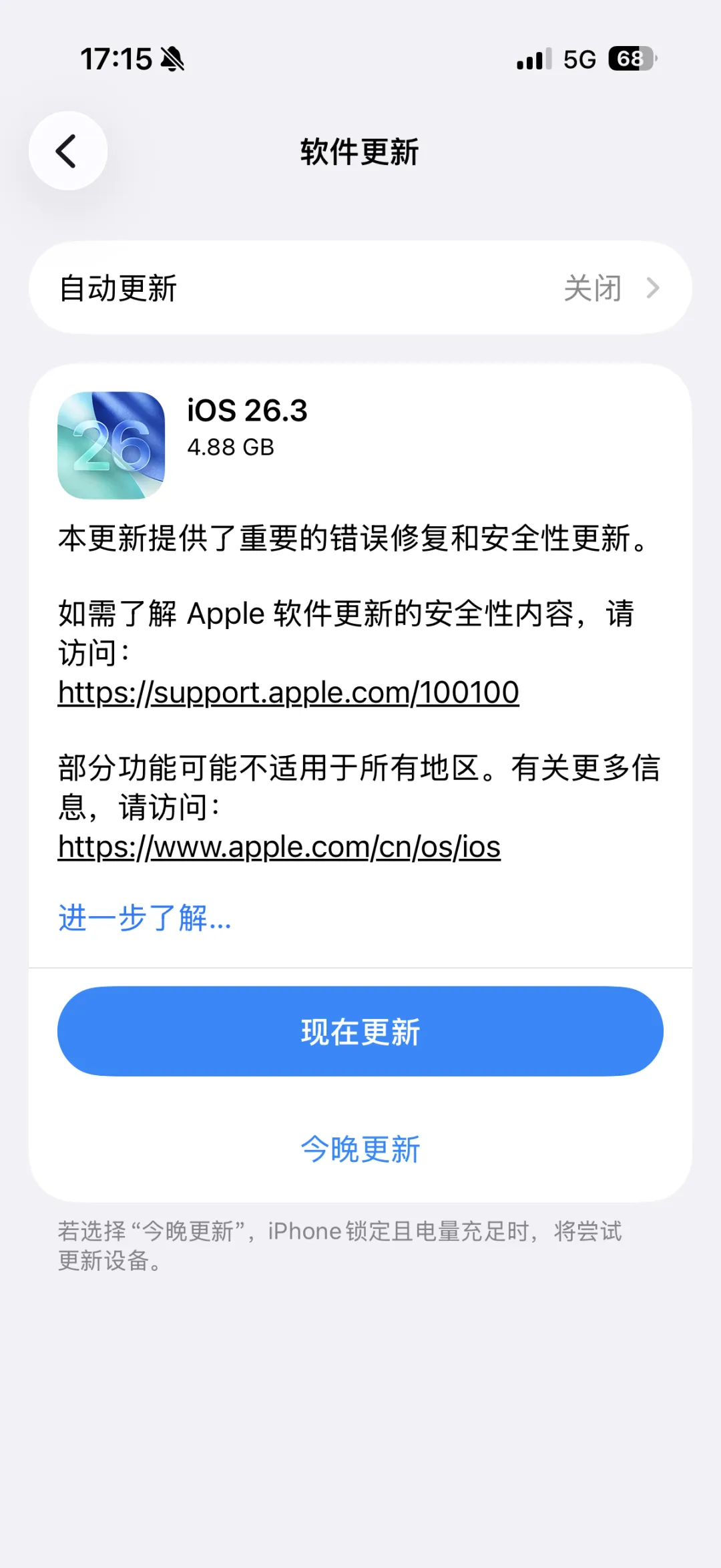 最近打开设置就弹 iOS 26.3,不少手持 iPhone 17 的朋友都在问:我现在 26.2.1 用着挺稳,要不要更?信号会不会变好?耗电会不会崩?