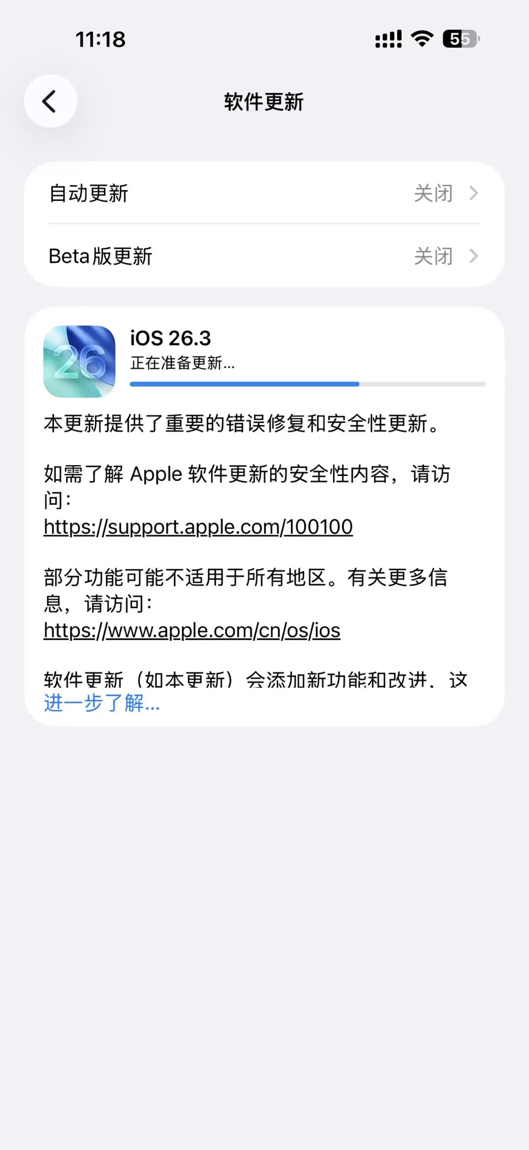 • 已升级iOS 26:建议立即更新,修复安全漏洞、优化稳定性,流畅度表现良好。