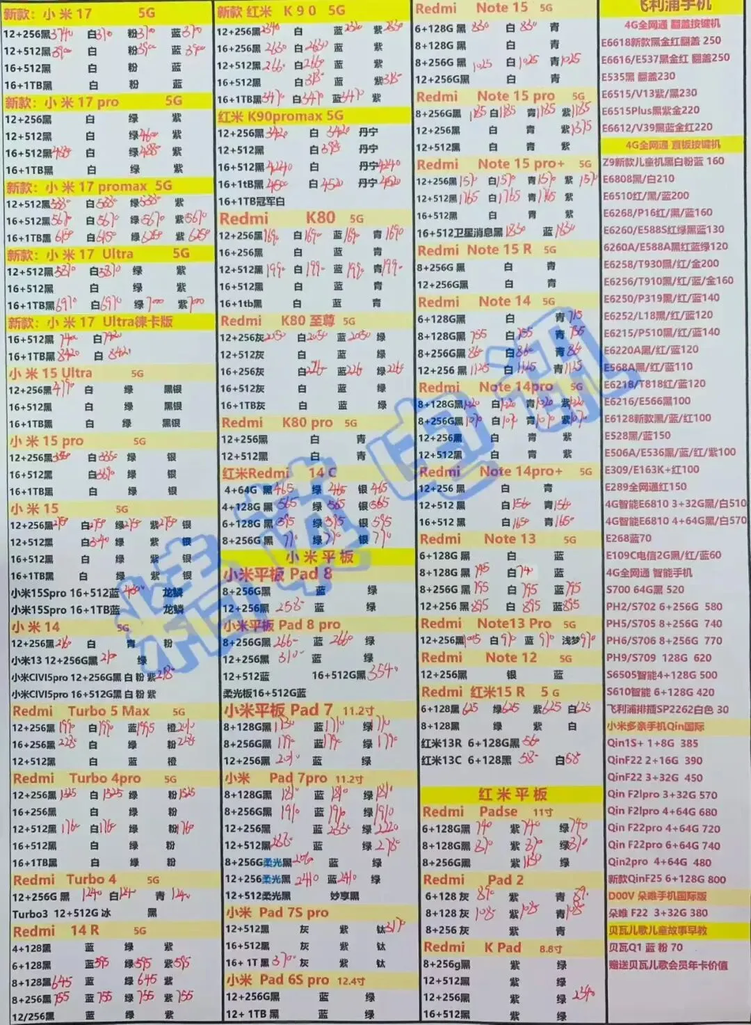 以下报价都是深圳华强北手机批发市场当天的最新批发价格(不含税),报价是我们的批发底价,零售拿货价格需加20~100元不等,京东包邮(量大价格可谈)
