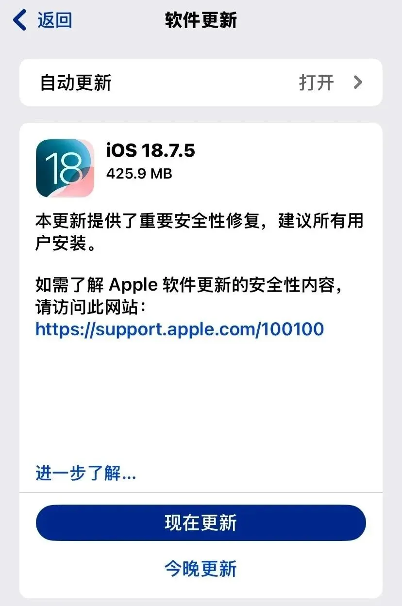 首先说只针对iPhone XS、XS Max、XR的iOS 18.7.5(22H311)。它几乎没有新增的功能,但是有两件关键的事情。