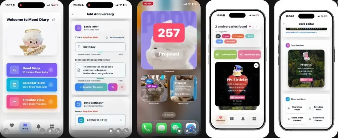🪟 软件简介:一款将纪念日提醒、倒数小组件和心情日记结合在一起的时间管理工具。支持自定义纪念日卡片、多风格桌面倒计时小组件,以及集成灵动岛的系统级强提醒闹钟。内置密码锁与本地加密,为心情日记提供私密空间,可记录情绪变化并回看“时光胶囊”式过往心情,让重要日子、节日与心情都被妥善保存。