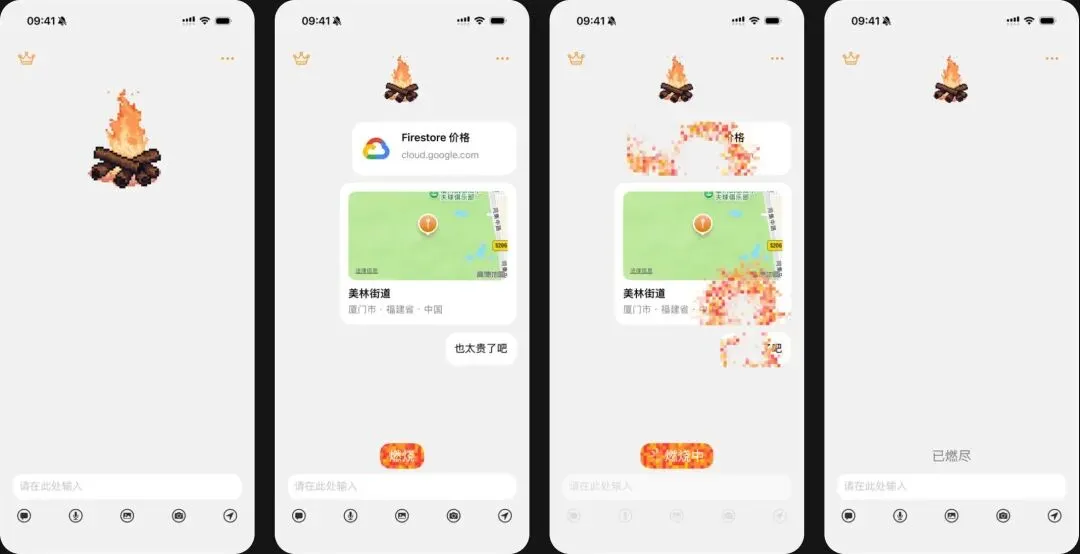 🪟 软件简介:一款用于情绪释放的极简应用,你可以向“篝火”倾诉任何内容,包括文字、语音、图片、链接与地理位置。当表达完毕,点击“燃烧”,所有内容会被永久销毁,不做存档与社交展示,让你在没有评判与压力的安全空间中完成自我独白和情绪清理。