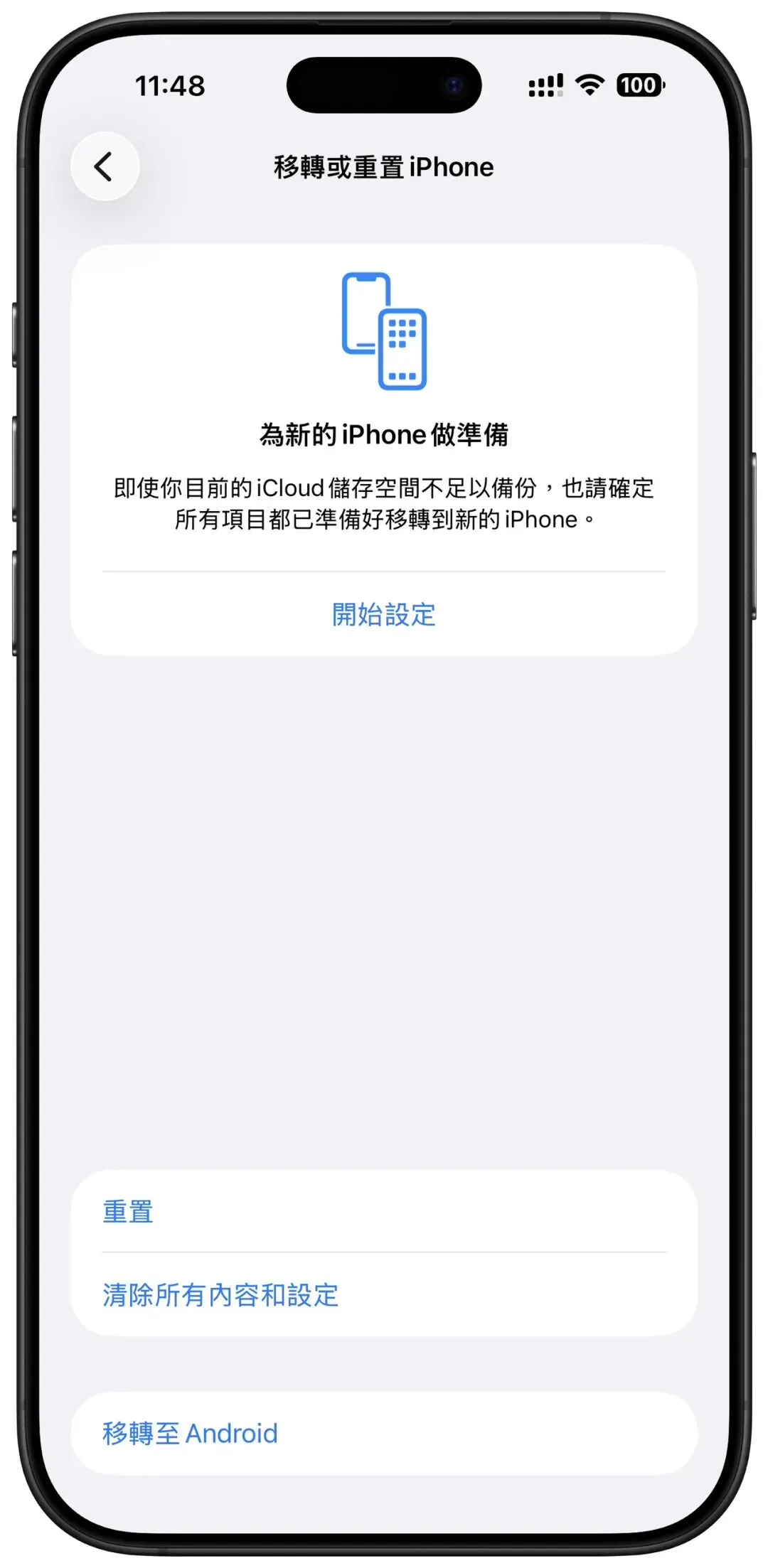 然后就可以看到转移至 android 的选项了,准备好你的 android 手机,开始换机吧。