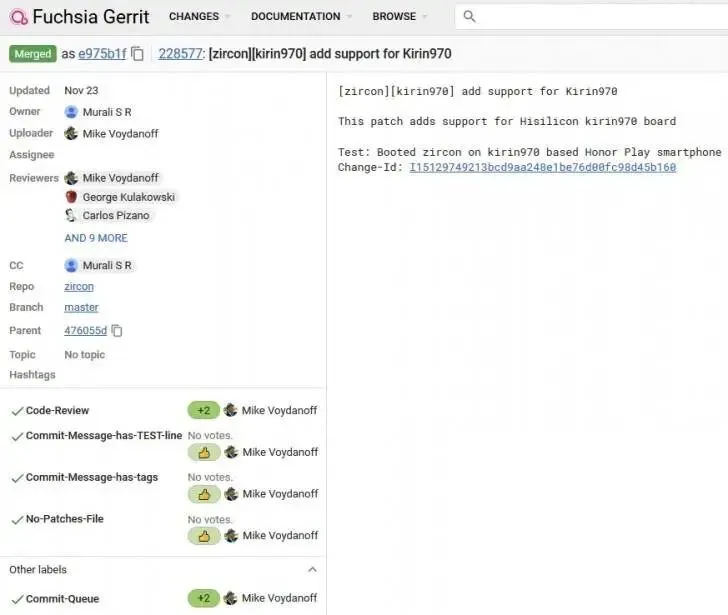 Google Source Gerrit 的截图, Add Support for Kirin970(增加了对麒麟970芯片组的支持)