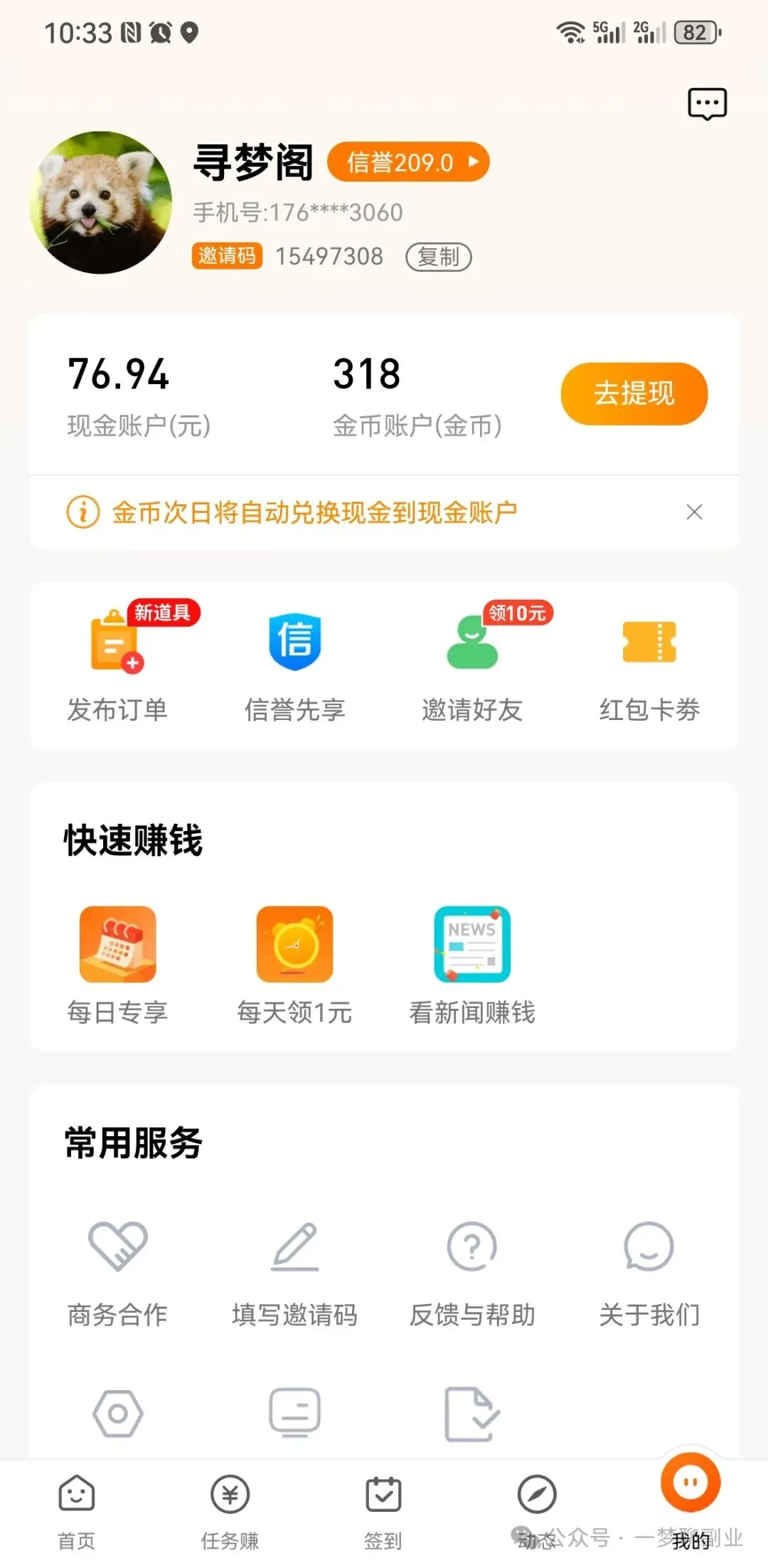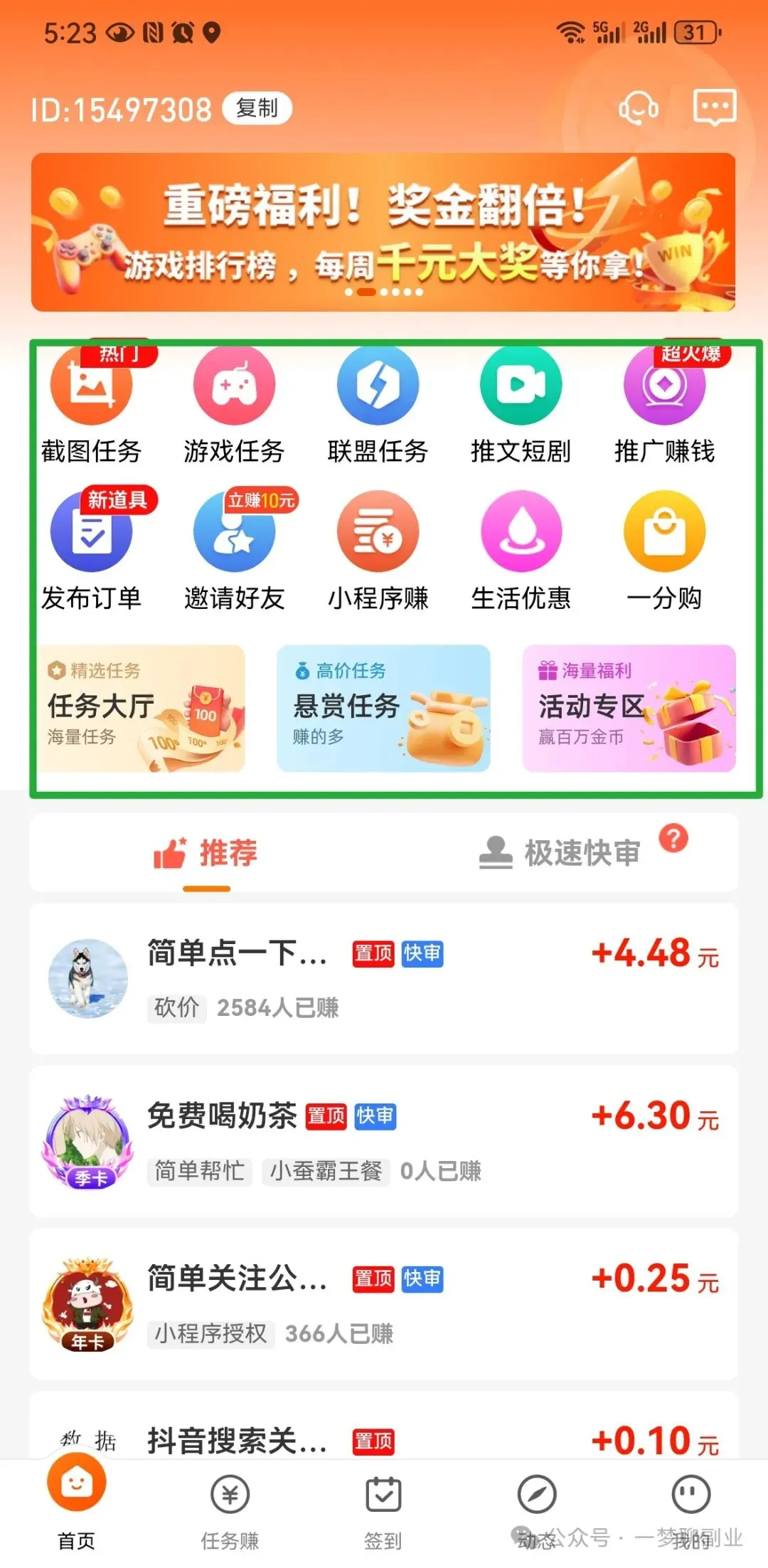 1.粉丝公众号后台回复“做任务”找一梦免费领取平台入口2.或添加一梦微信w13671142809免费领取之前一梦在文章中分享了几个手机零撸平台,不少粉丝跟着一梦赚到了钱,今天给大家分享一个任务平台,里面的任务比之前平台的任务简单,价格0.1~100元不等,刚开始入门建议从点赞,浏览,加群,加好友,阅读等这些简单的任务开始