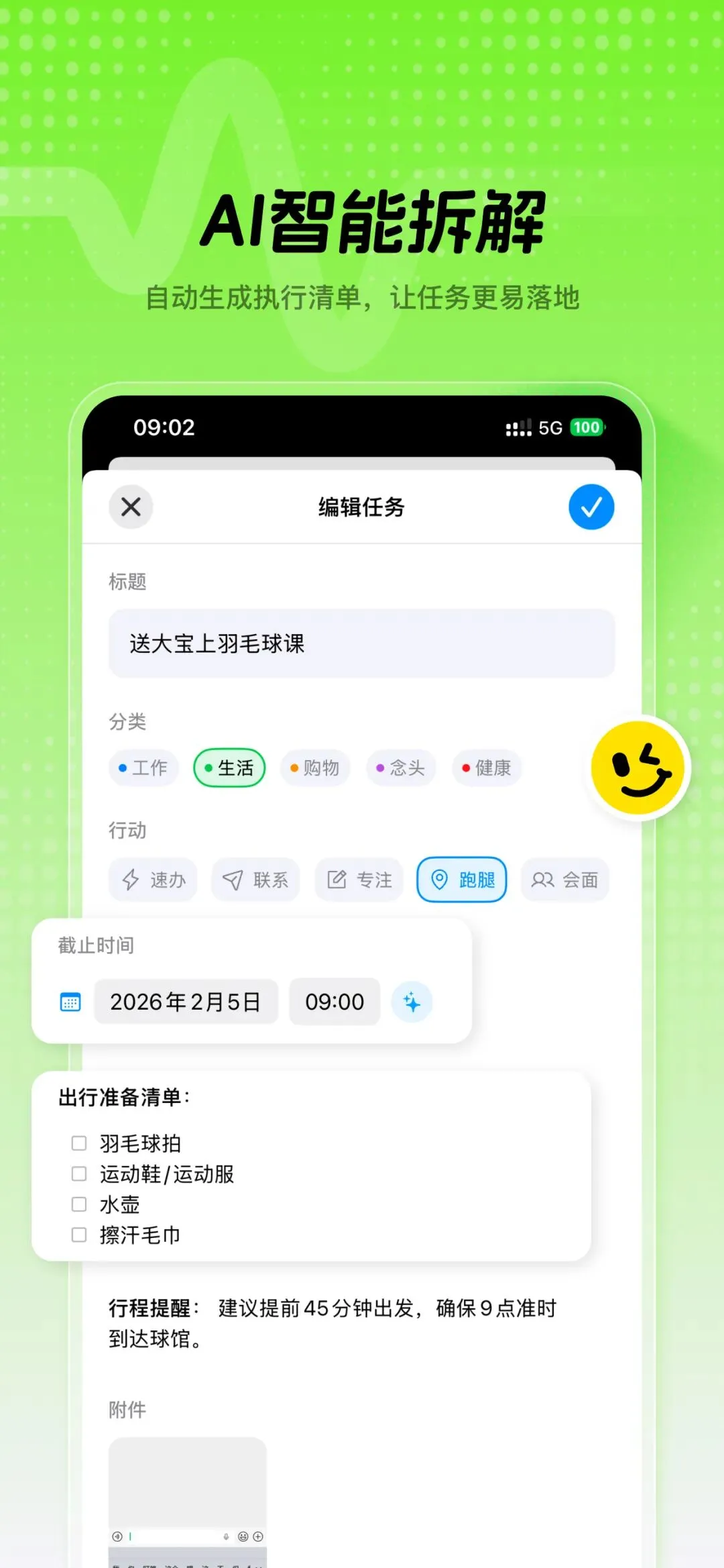 ✅ AI智能拆解: 你说“周末要搬家”,它自动帮你拆解成“找搬家公司、打包行李、买纸箱”等子任务,简直是拖延症救星!