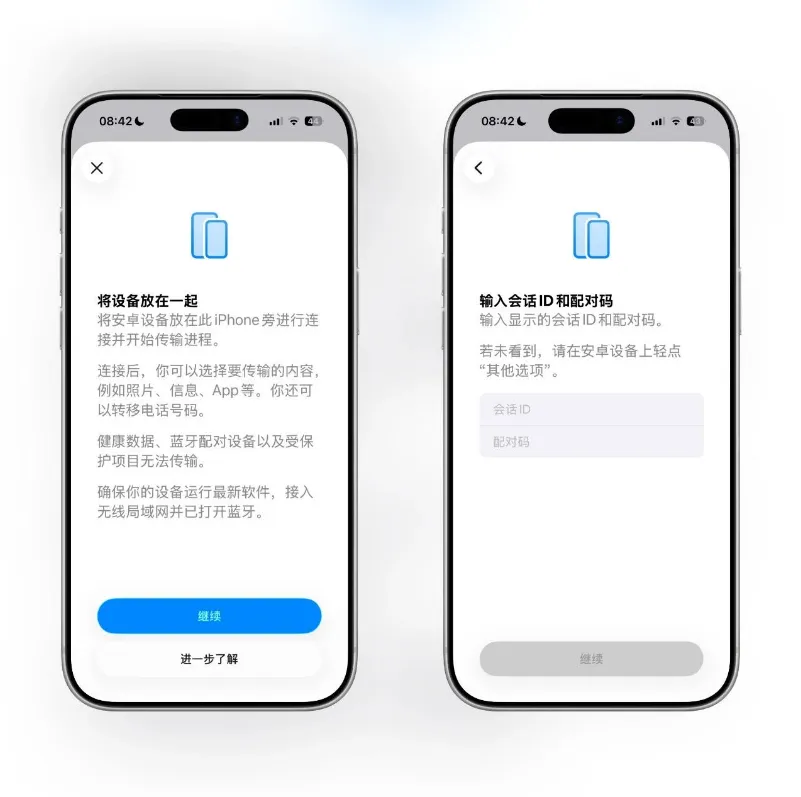 最先碰到的是「传输至安卓」,位置放在“设置→通用→传输或还原 iPhone”,两台手机靠近,扫个码或者输个码,Wi‑Fi直连跑数据,蓝牙打个辅助,过程加密,能带走的东西是照片、信息、通讯录、你装过的App列表、部分密码,健康那类敏感数据不跟着走,想换阵营的用起来省步骤,另一侧的安卓设备也得跟上适配,眼下能对上的机型不算多,能用的先用,列表外的再等等。