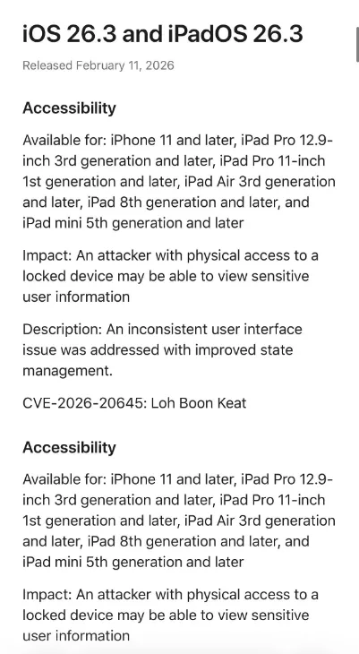 凌晨拿起手机一瞟,推送亮着,iOS 26.3,版本号23D127,春节前这波还是来了,手上装了RC的朋友,去设置里“软件更新→Beta版更新”,那个开关关掉,关完等一会儿就能看到正式版,不然卡在测试通道里,怎么刷都刷不到正式包。